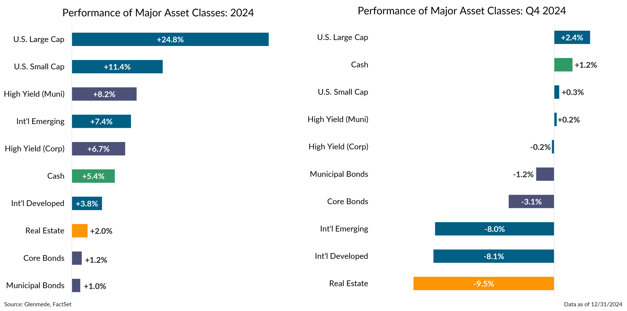 - Major asset classes have seen positive returns in 2024, though Q4 performance was mixed.